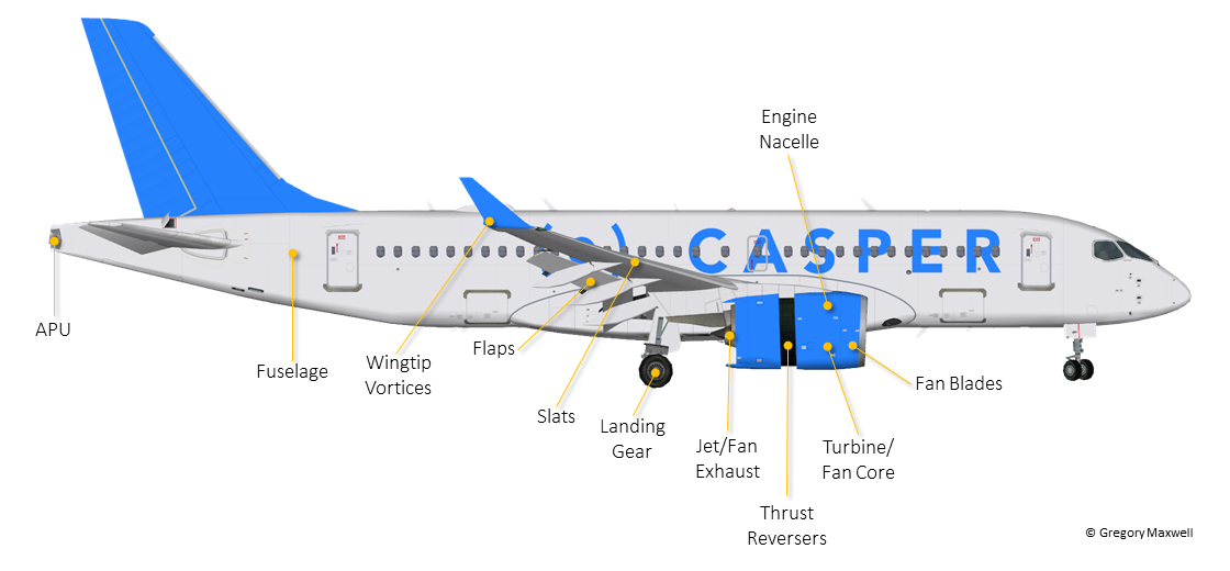 Contrary to popular perception, aircraft noise is not solely produced by an airplane's engine(s). Instead, it is a complex combination of primary and secondary sources which all contribute to the noise emitted by an aircraft in flight.