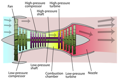 The high bypass turbofan engine is just what it sounds like, a turbofan with a much higher bypass ratio than first-generation low bypass turbofans. The JT9D was built with a 5:1 bypass ratio which allowed it to produce over 40,000 lb. of thrust per engine. When compared with its low bypass cousins like the JT8D and RCo.10 the fan diameter was more than twice as wide. The giant diameter of the fan and increased efficiency it delivered allowed the engine to produce a very large amount of thrust from the low-speed bypass air. The design also reduced noise as the majority of the thrust was generated from the low-speed bypass air. The first few generations of the high bypass turbofan engine were used extensively on the Airbus A300, A310, A320, Boeing 737 Classic, 747, 757, 767, Lockheed L-1011, McDonnell-Douglas DC-10, and MD11.
