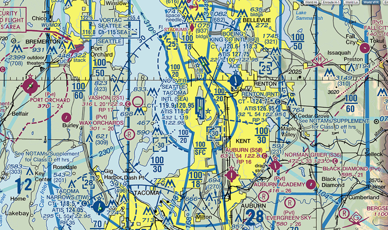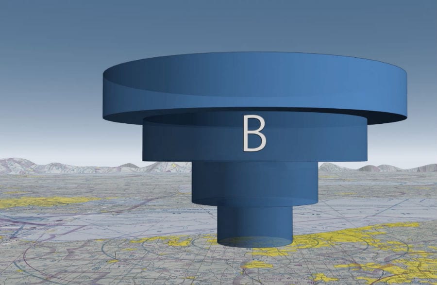 These requirements are designed to exclude the majority of VFR flights to ensure adequate separation between low-speed piston-engined VFR traffic and high-speed IFR jet traffic. Most VFR flights will be instructed to remain clear of Class B airspace and will not receive clearance to enter or transit the airspace especially during high traffic volume periods at the airport. Class B airspace is indicated on aeronautical charts by a thick blue line as shown in the image below.